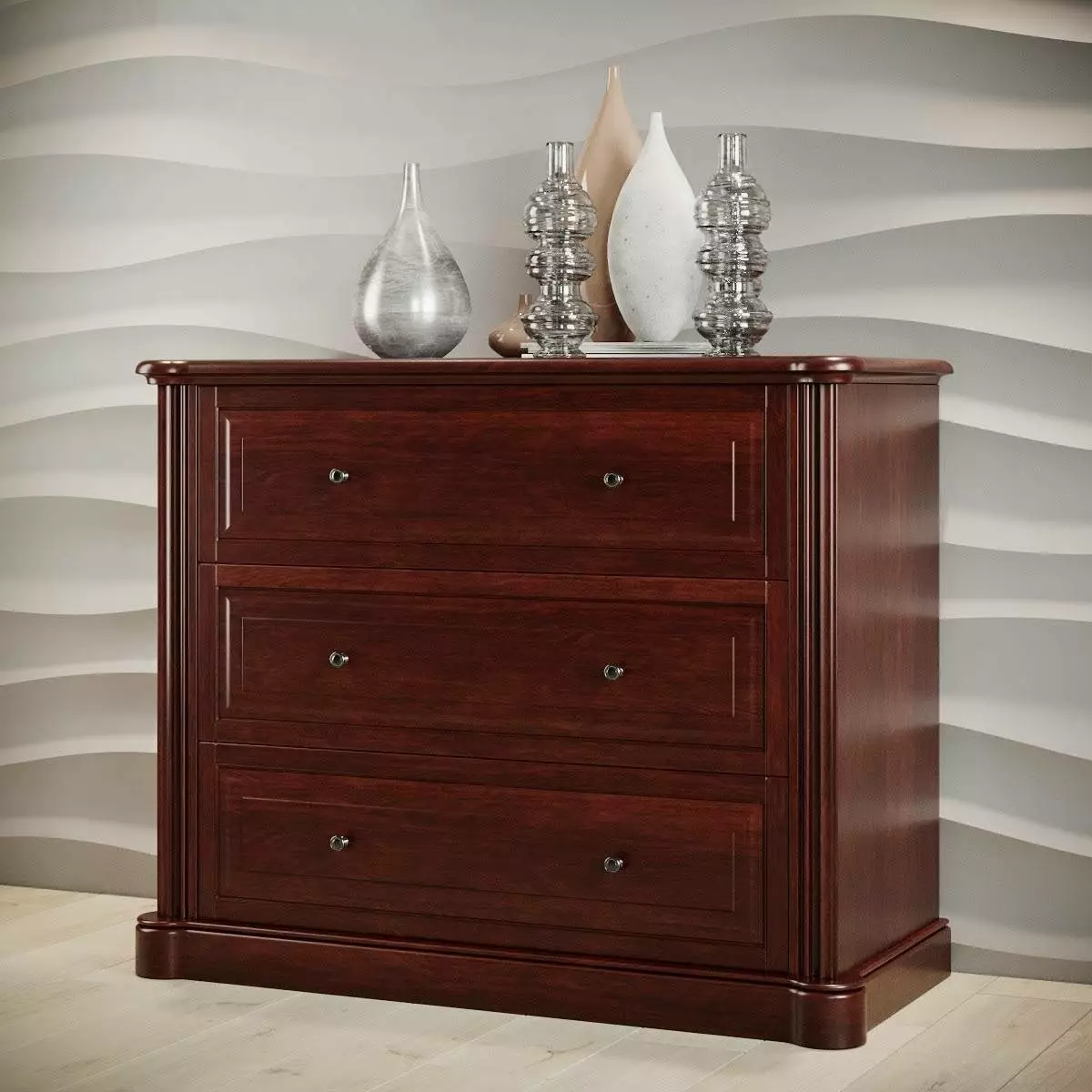 Темний горіх, Яблуня, Каштан.Матеріал: Масив вільхи.Цей комод це