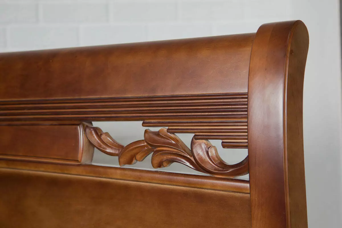 МДФ+шпон; царги - масив вільхи.Вишуканий та багатий вид ліжка
