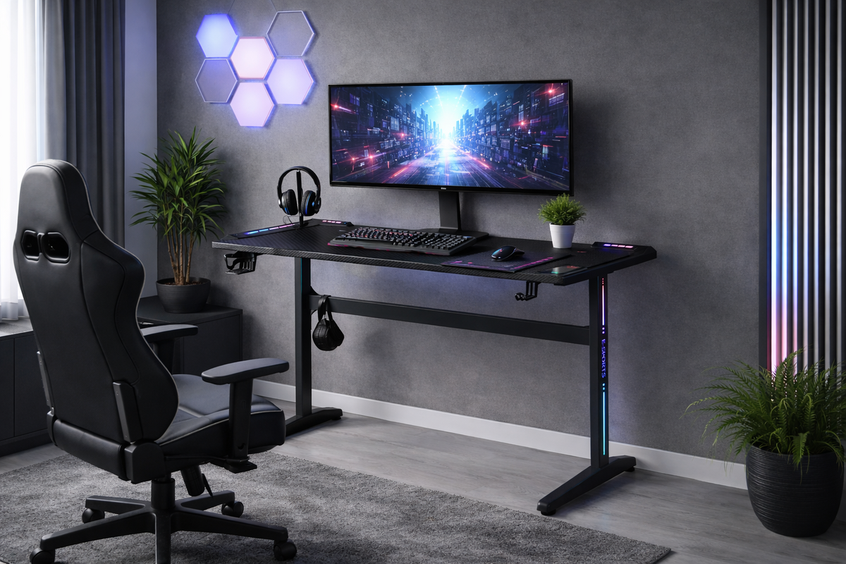 Стіл геймерський Енерджі, чорний/карбон з LED