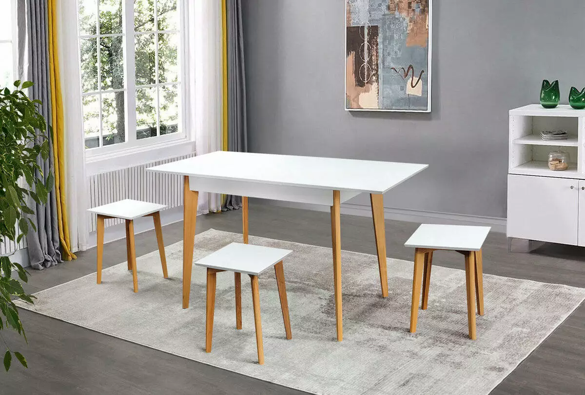 білий.Матеріал: Ніжки і каркас: масив вільхи; Столешня: МДФ