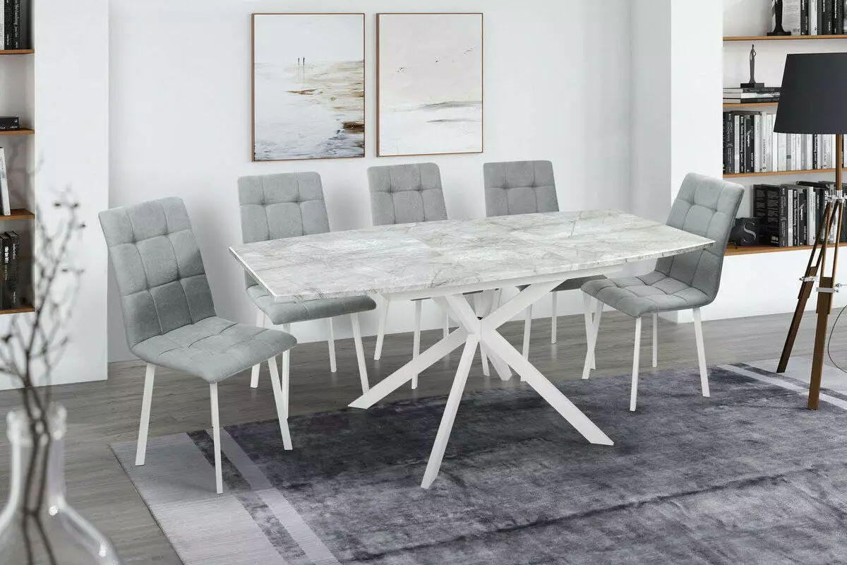 Стіл Річард 140(+40)*85 білий метал/базальт