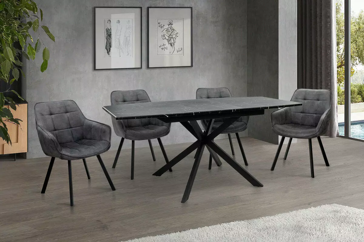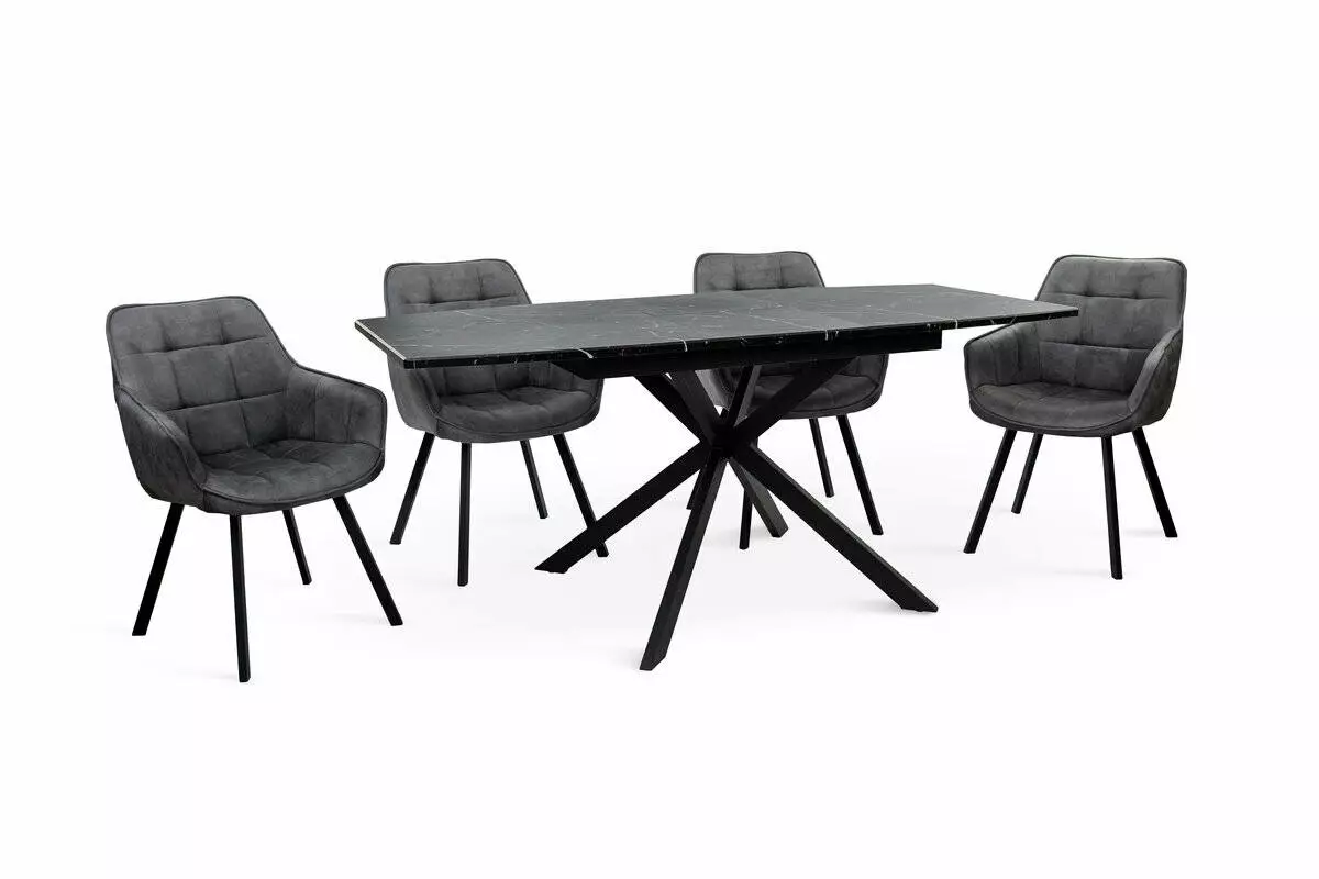 Стіл Річард 140(+40)*85 чорний метал/мрамор чорн