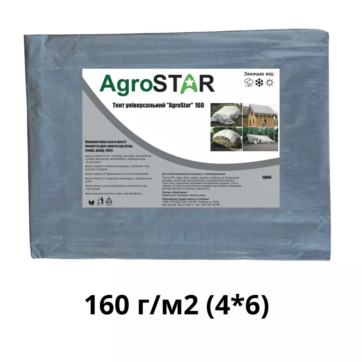 Тент універсальний"AgroStar" 160(4*6)сірий
