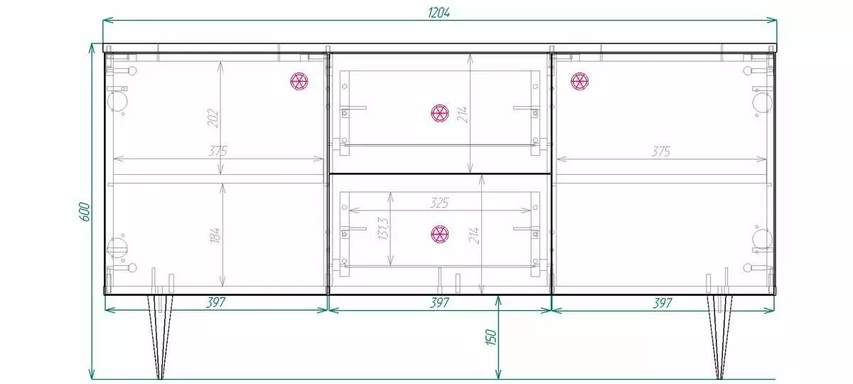 Габаритні розміри : Ширина 1204 ммГлибина 394 мм Висота 600 мм