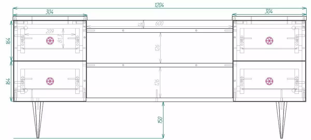 Габаритні розміри: Ширина 1204 мм Глибина 394 мм*Висота 500 мм