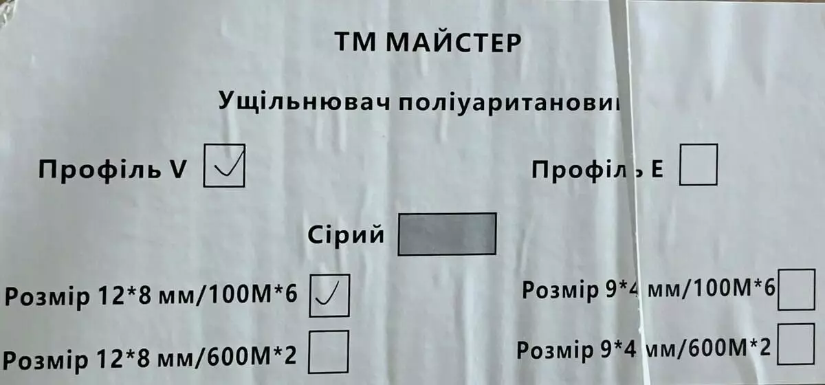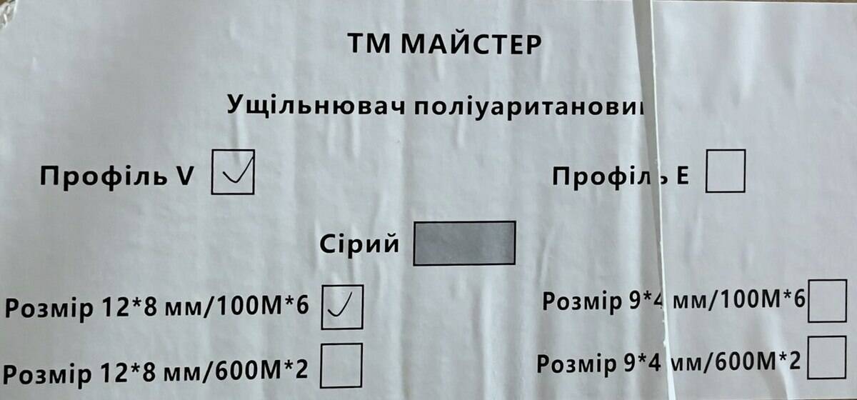 Ущільнювач поліурит(профільV)сірий 12*8 мм/100 м