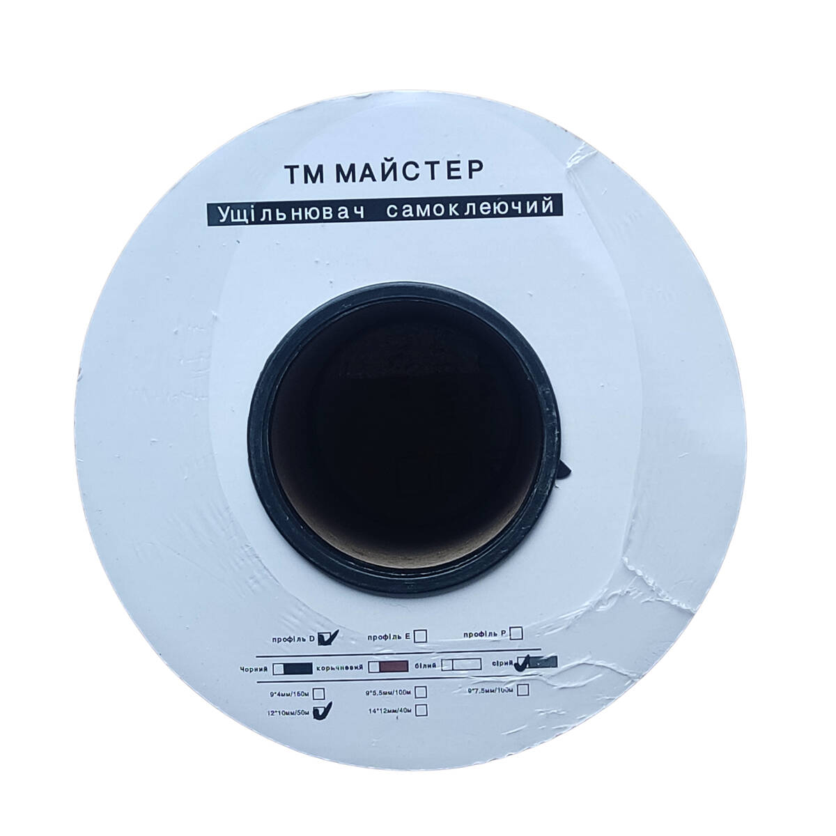 Ущільнювач самоклеюч.(профільD)сірий 12*10 мм/50 м