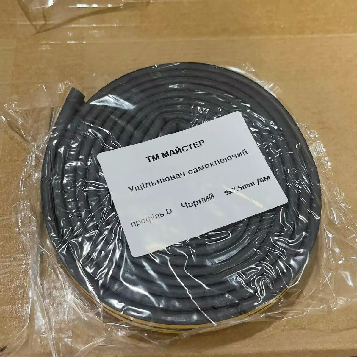 Ущільнювач самоклеючий(профільD)чорн 9*7,5мм/6 м