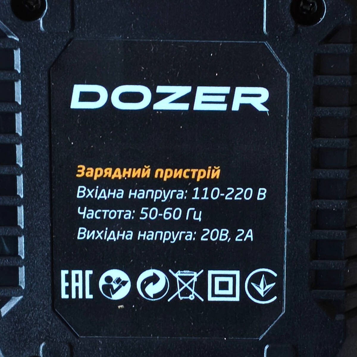 Мережевий зарядний пристрій DOZER для акумуляторів 20V з посадкою
